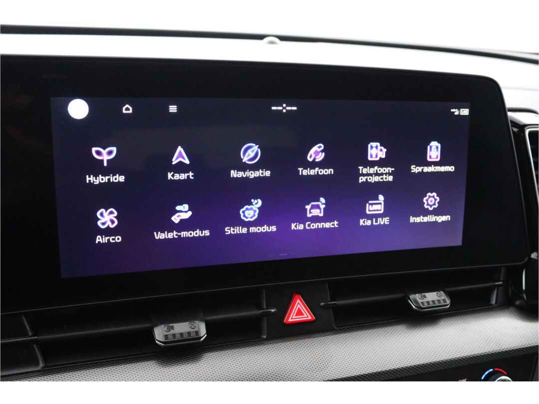 Stel de interface voor uw cockpit naar wens in met het digitale dashboard van deze auto. Hoeveel ruimte heeft u nog bij het inparkeren? De achteruitrijcamera brengt helder in beeld wat zich achter de auto bevindt en geeft een geluidssignaal. Adaptive cruise control houdt de ingestelde snelheid vast en houdt automatisch afstand tot uw voorligger. De auto's van vandaag rijden niet alleen subliem, maar luisteren ook goed. Via een speciale app kunt u overal diverse functies controleren en de status van de auto inzien. In deze Sportage vindt u niet alleen schakelaars op het stuur om het full map navigatiesysteem te bedienen en het audiosysteem met DAB-ontvangst, maar er is ook spraakbediening. Ook is de Kia uitgerust met: electronic climate control, sportstuur met schakelpaddels, regensensor, keyless entry en automatisch dimmende binnenspiegel.