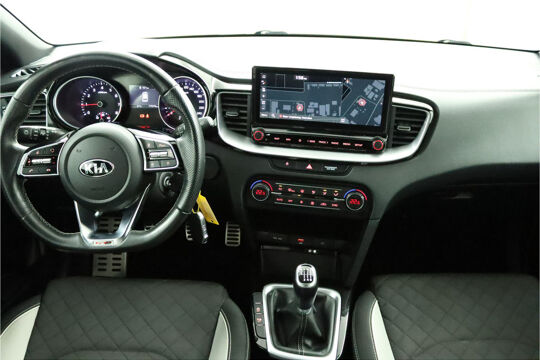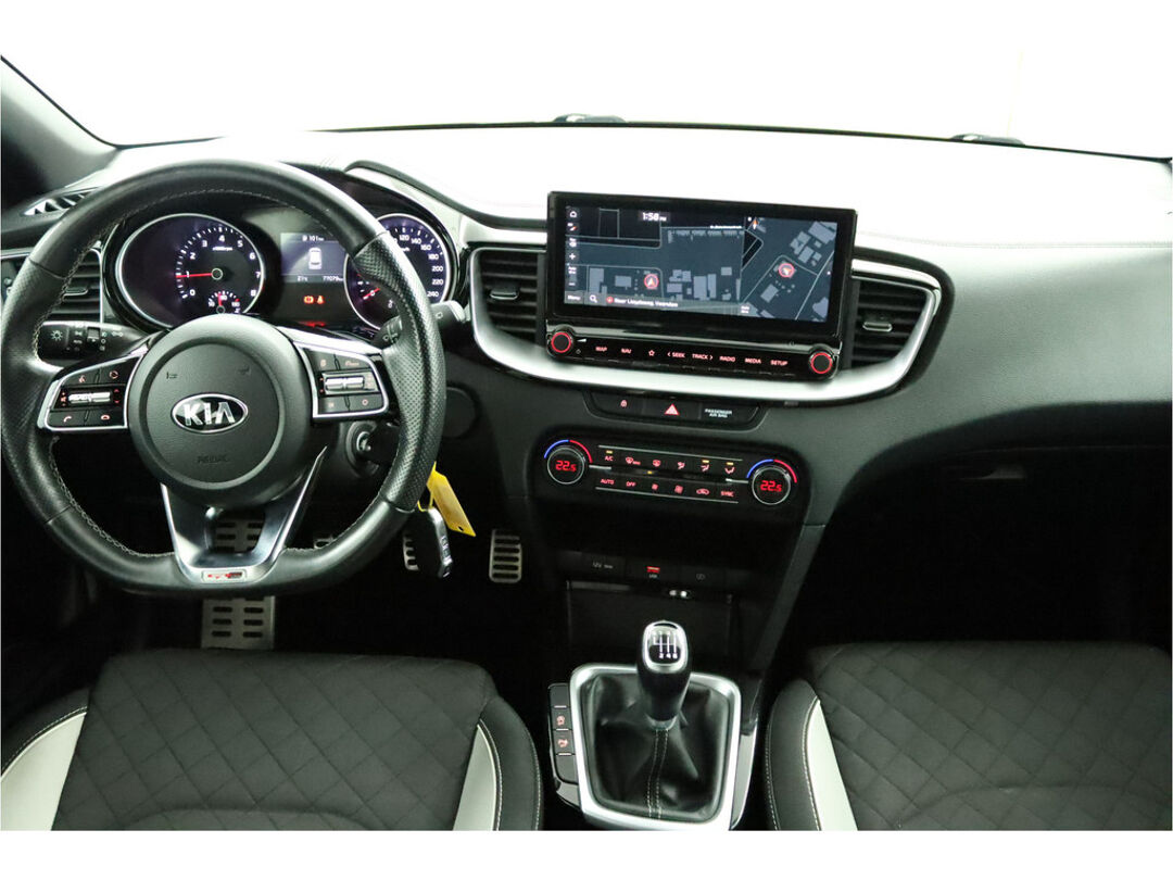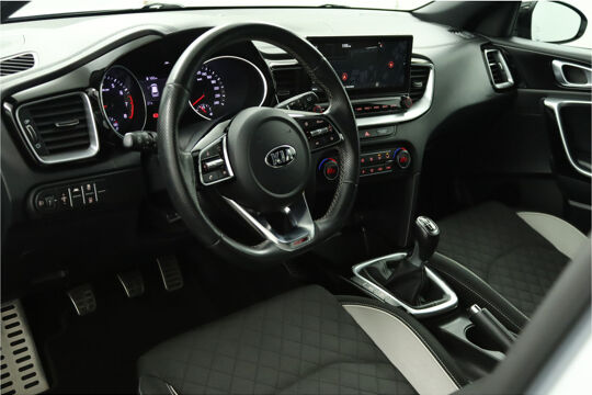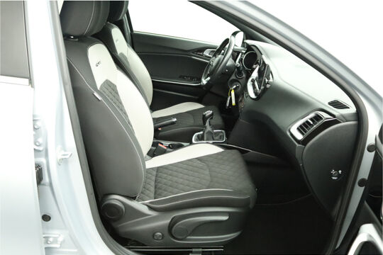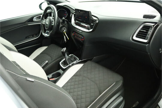 De speciale app verbindt met Connected Services, die de status van vitale functies bijhoudt en waarschuwt als u bijvoorbeeld moet tanken, de bandenspanning moet controleren of olie moet bijvullen. U kunt tijdens de rit uw ogen steeds op de weg houden, want het audiosysteem (met DAB!) en het full map navigatiesysteem kunt u bedienen vanaf het stuur of met spraak. Het spreekt voor zich dat een auto als deze ook van electronic climate control is voorzien. Boem is ho? Niet bij deze Kia Ceed Sportswagon. De piepjes van de parkeersensoren waarschuwen u op tijd voor obstakels. De elektronische systemen in deze Kia helpen u actief om comfortabeler te rijden. Een automatisch inschakelbare verlichting en een regensensor houden de omstandigheden onderweg in de gaten. Ook cruise control, sportstuurwiel, automatisch dimmende binnenspiegel, centrale deurvergrendeling met afstandsbediening en lederen versnellingspook zijn aan boord.
