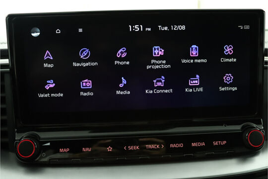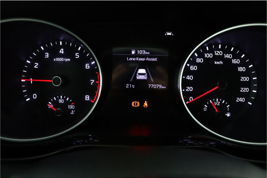 Als bestuurder van deze Kia bent u nooit alleen. U wordt onderweg bijgestaan door technologische hulpmiddelen die samen met u de weg in de gaten houden. Als het nodig is, grijpen ze zelfs in, door te remmen of bij te sturen. Het Lane-keeping systeem let constant op en waarschuwt of corrigeert als u onoplettend over de lijnen van de rijstrook gaat. Forward collision warning waarschuwt voor een kop-staart botsing. Bij concentratieverlies van de bestuurder geeft vermoeidheidsherkenning automatisch een waarschuwingssignaal. Bovenop deze veiligheidsfeatures heeft deze Kia bovendien hill hold functie, autonoom remsysteem en bandenspanningcontrolesysteem.