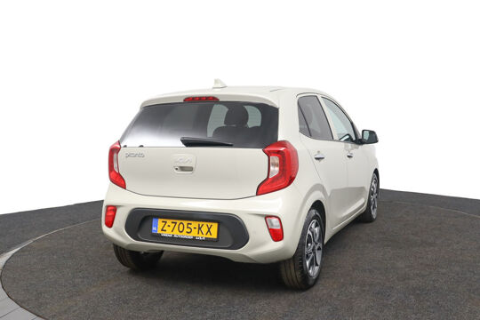 Kinderfietsje niet gezien bij het inparkeren? Dat gebeurt u nooit meer. Daar zorgt de achteruitrijcamera wel voor! Deze Kia Picanto is 'connected'. Belangrijke functies worden permanent gemeten en zijn uit te lezen via een speciale app, ook op afstand. Uw veiligheid op de weg wordt verhoogd door het audiosysteem met DAB-ontvangst en het full map navigatiesysteem te bedienen vanaf het stuur of met spraakbediening, zodat uw handen veilig op het stuur blijven en uw ogen gericht zijn op de weg. Met electronic climate control hoeft u alleen de gewenste temperatuur in te stellen. Het systeem doet de rest. De aanwezige cruise control scheelt lekker in brandstofkosten. En ook bij de flitspaal. De uitrusting van deze Kia is met keyless entry en verstelbaar stuur behoorlijk compleet.