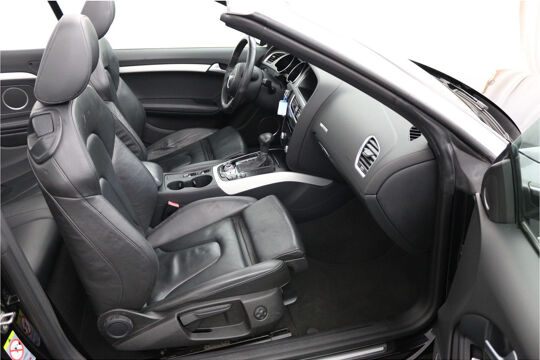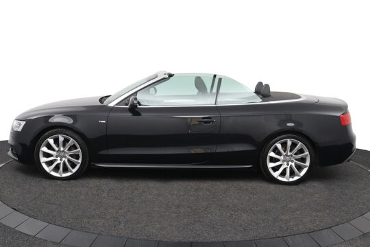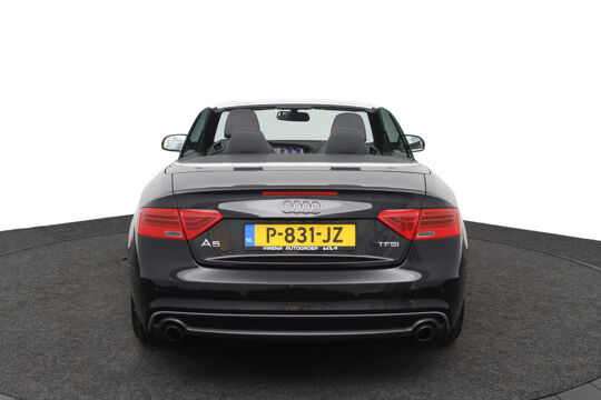 Zodra de zon zich laat zien, kunt u heerlijk genieten achter het stuur van deze cabriolet. Laat u niets wijsmaken, deze Audi A5 Cabriolet biedt alles wat u van een auto verlangt. Deze auto komt uit 2013. Exclusiviteit en sportiviteit komen samen in de S-Line styling. Een viercilinder benzinemotor en een automatische transmissie zorgen voor de uitstekende prestaties van deze auto. Deze Audi A5 Cabriolet heeft verwarmbare voorstoelen, voor zowel bestuurder als bijrijder. Ziet er goed uit, die sportstoelen. Maar waar het om gaat, is de solide zit onder alle omstandigheden. Het elektrische cabriodak opent snel en soepel. Zo geniet u maximaal van elke kilometer die u open rijdt. Met de krachtige xenonverlichting rijdt u ontspannen in het donker. Bij de rijke uitrusting horen ook 18 inch lichtmetalen velgen, sportonderstel en verstelbare lendensteunen.
