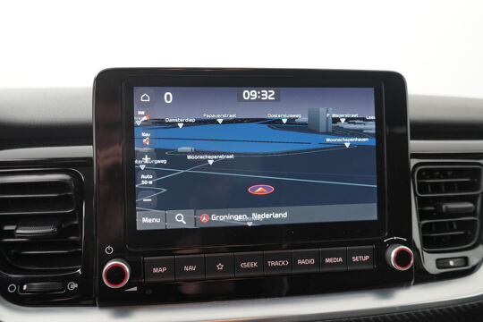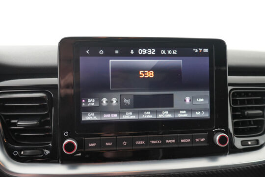 Kommaar-kommaar-kommaar, aldus de achteruitrijcamera. Iedere centimeter vrije ruimte komt haarscherp in beeld. Schadevrij inparkeren maar! Kies de muziek waarvan u houdt, dankzij de DAB-radio klinkt het altijd geweldig. Intussen bedient u het audiosysteem en het full map navigatiesysteem met de knoppen op het stuur. Tot de standaard uitrusting van deze auto hoort ook electronic climate control. In deze Kia kunt u zich concentreren op het verkeer, terwijl de auto de omgeving voor u in de gaten houdt. Een automatisch inschakelbare verlichting zorgt dat de verlichting aangaat als het donkerder wordt - in tunnels bijvoorbeeld - en de regensensor schakelt de ruitenwissers in als het nodig is. U hoeft er niets aan te doen. Geen sleutel of afstandsbediening meer nodig om deze Kia Stonic te ontgrendelen. De sloten gaan vanzelf open als u dichtbij komt, via de sensor van de keyless entry.