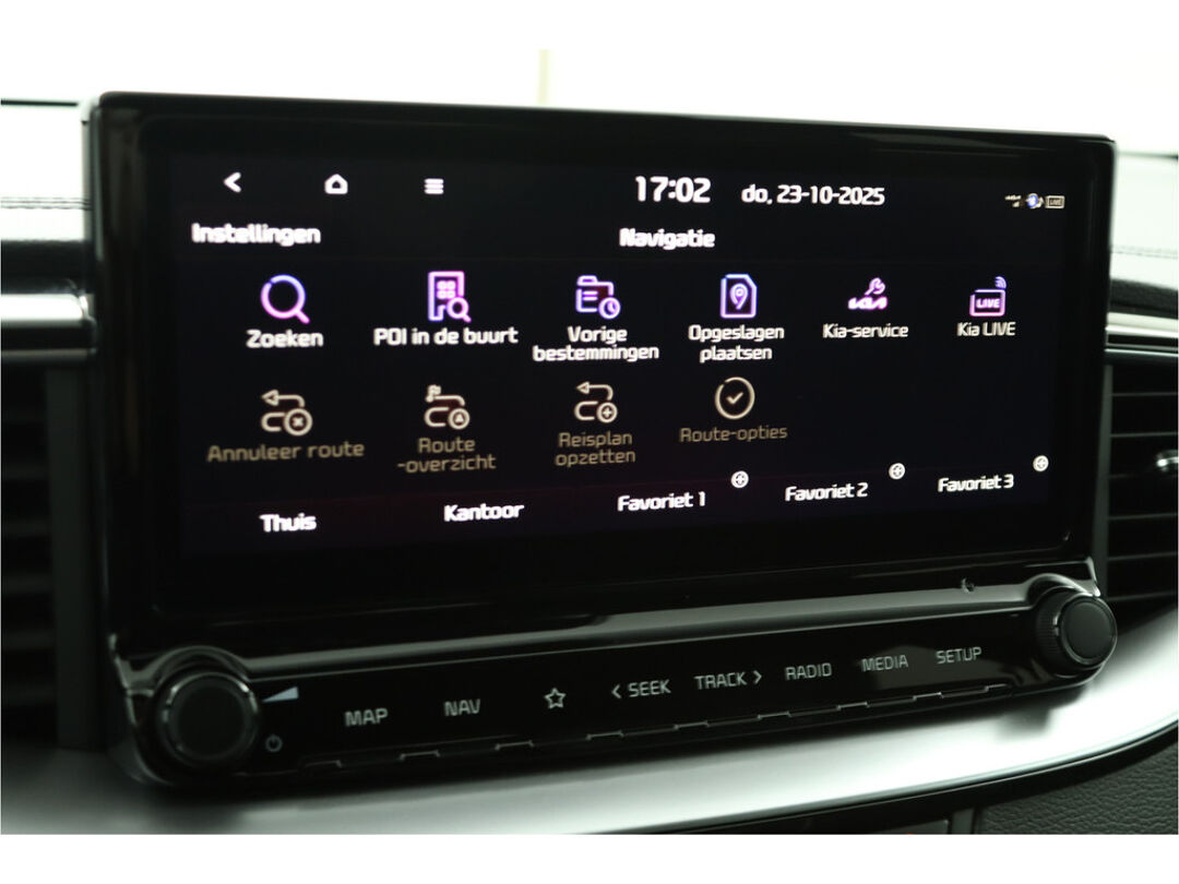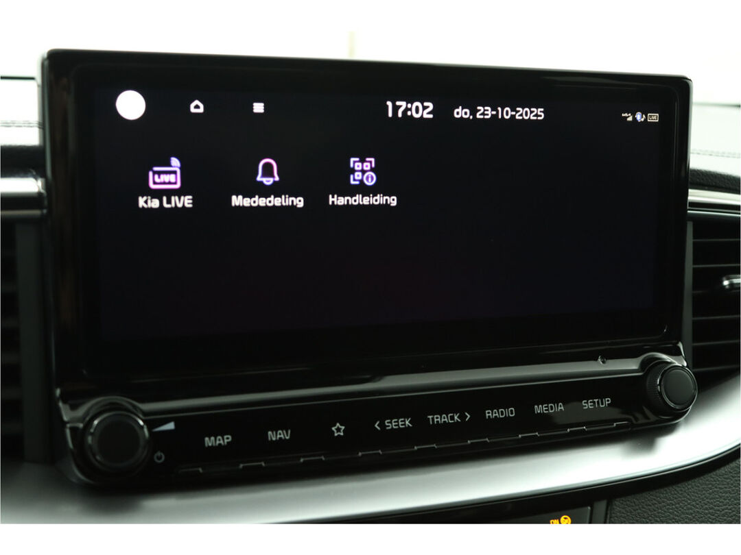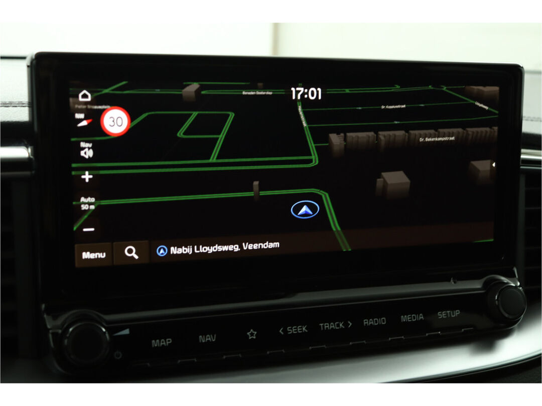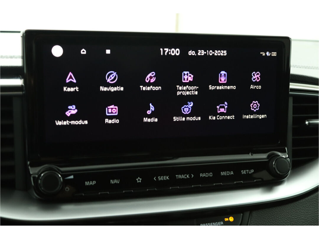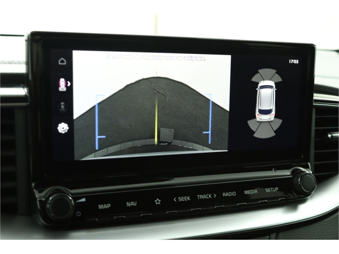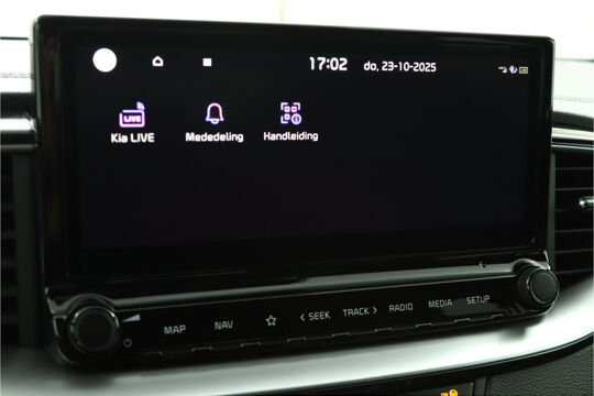 Het digitale dashboard vertelt u alles wat u wilt weten voor een slimme, comfortabele en veilige rit. Met de achteruitrijcamera ziet u precies wat er achter de auto gebeurt. Locatie, motorconditie, storingen... via Connected Services krijgt u alle vitale info over de auto door. Ook handig bij pech! U kunt tijdens de rit uw ogen steeds op de weg houden, want het audiosysteem (met DAB!) en het full map navigatiesysteem kunt u bedienen vanaf het stuur of met spraak. Moet uw smartphone ook even tanken? Bijladen kan supersimpel met de draadloze telefoonlader. Ook is de Kia uitgerust met: electronic climate control, regensensor, sportstuurwiel, keyless entry, automatisch dimmende binnenspiegel en lederen versnellingspook.