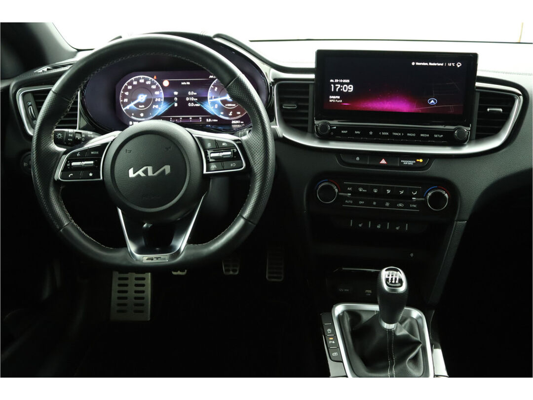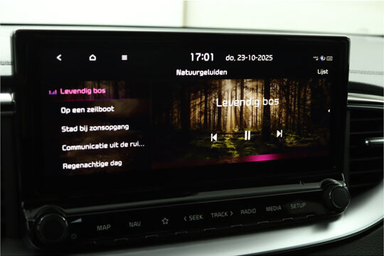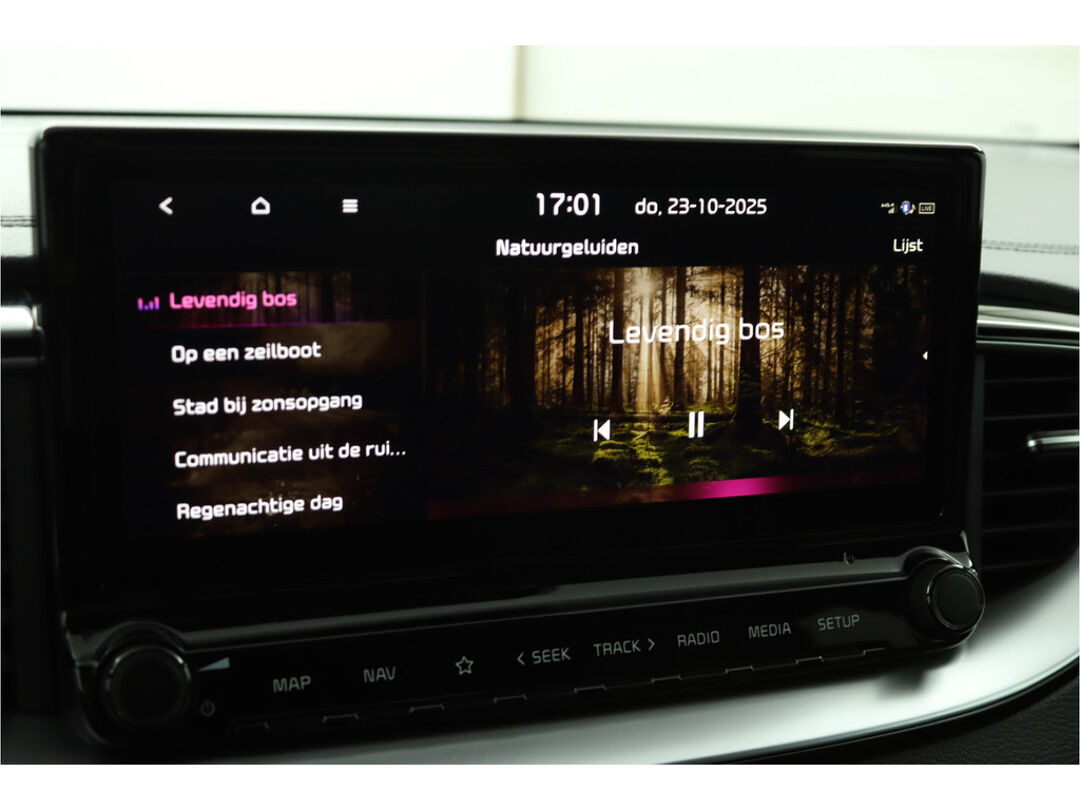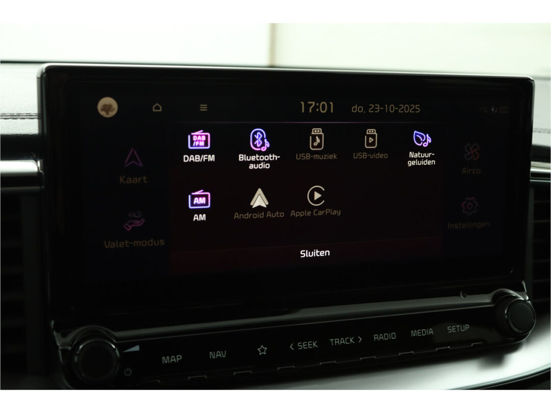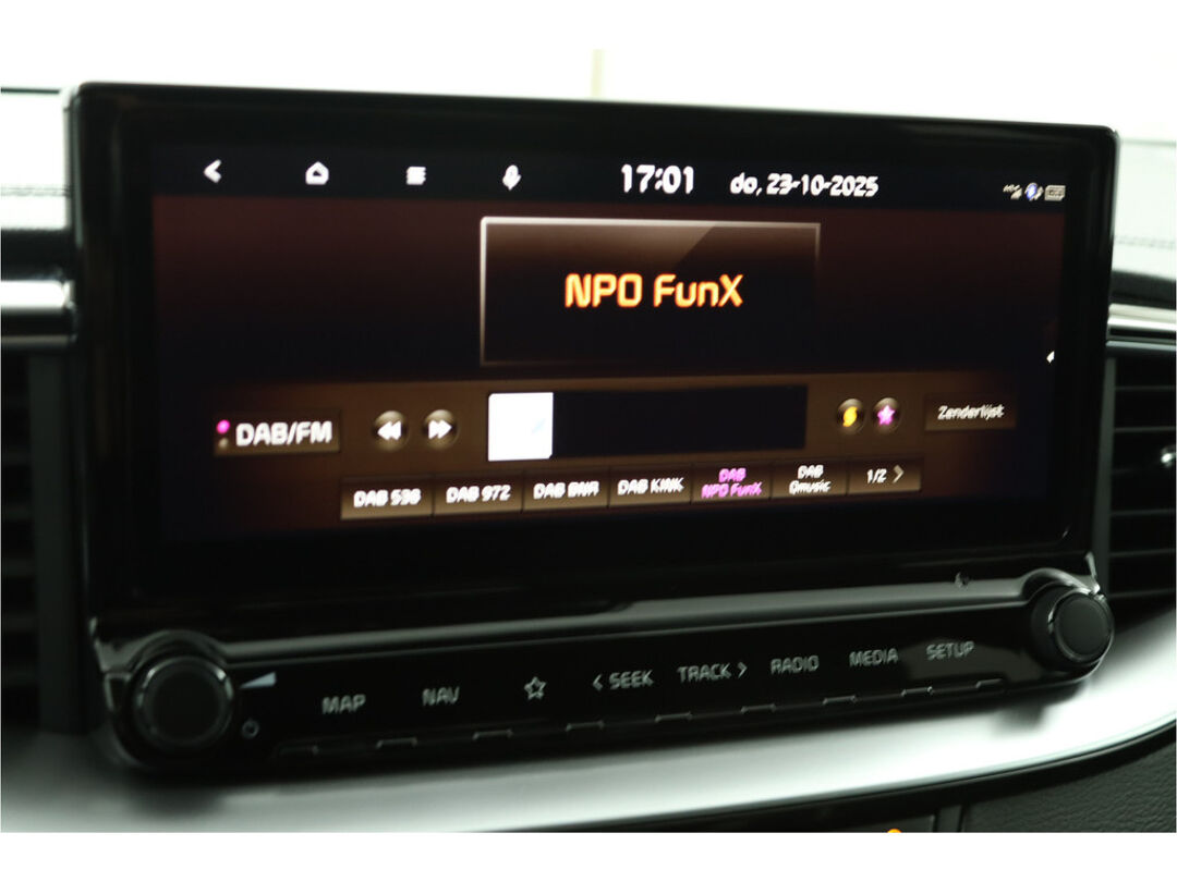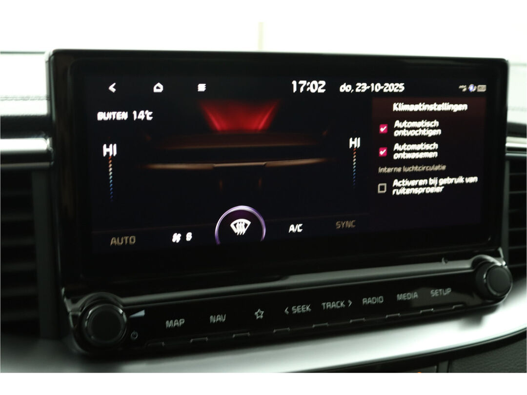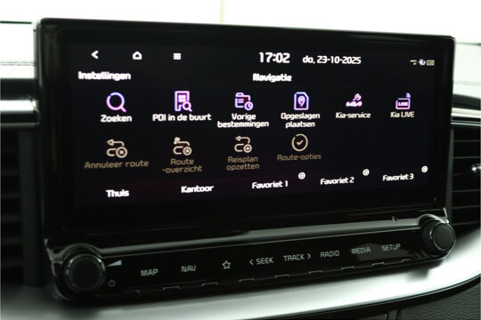 Het digitale dashboard vertelt u alles wat u wilt weten voor een slimme, comfortabele en veilige rit. Met de achteruitrijcamera ziet u precies wat er achter de auto gebeurt. Locatie, motorconditie, storingen... via Connected Services krijgt u alle vitale info over de auto door. Ook handig bij pech! U kunt tijdens de rit uw ogen steeds op de weg houden, want het audiosysteem (met DAB!) en het full map navigatiesysteem kunt u bedienen vanaf het stuur of met spraak. Moet uw smartphone ook even tanken? Bijladen kan supersimpel met de draadloze telefoonlader. Ook is de Kia uitgerust met: electronic climate control, regensensor, sportstuurwiel, keyless entry, automatisch dimmende binnenspiegel en lederen versnellingspook.