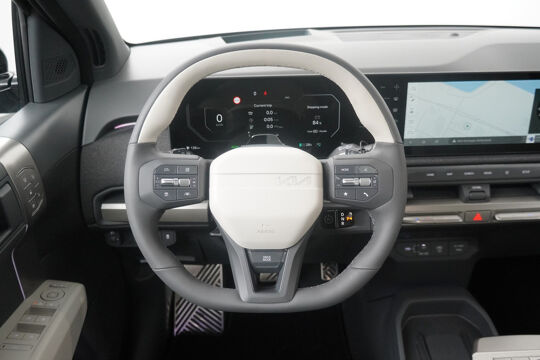 De Kia EV3 is ook voorzien van ADAS. Deze Advanced Driver Assistence Systems fungeren als extra ogen en oren: ze houden voor u de weg in de gaten en grijpen in wanneer dat nodig is. Verkeersbord-detectie herkent verkeersborden en toont deze op het instrumentarium van de auto. Het Lane-keeping systeem doet precies wat nodig is: waarschuwen en corrigeren bij onbedoelde overschrijding van de rijstrooklijnen. Voertuigen of personen buiten uw zicht kunnen gevaar opleveren. De actieve dodehoekdetectie waarschuwt direct. De auto is ook uitgerust met forward collision warning system, hill hold functie, vermoeidheidsherkenning, autonoom remsysteem en bandenspanningcontrolesysteem.