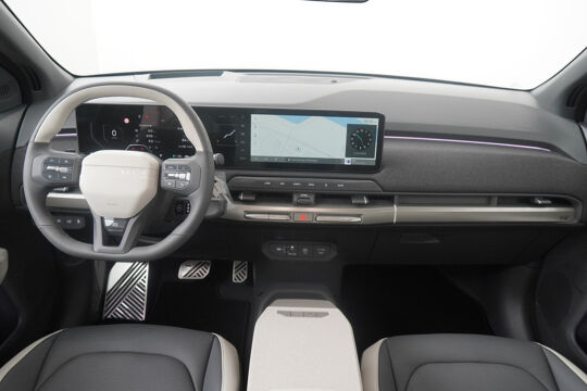 U wordt geïntroduceerd tot de digitale wereld van mobiliteit waarop alles wat u wenst wordt geprojecteerd op het digitale dashboard. De achteruitrijcamera vergemakkelijkt achteruit inparkeren. U ziet duidelijk wat er achter de auto gebeurt. Adaptive cruise control is een comfortabele en veilige optie. Het systeem reguleert de snelheid en houdt automatisch afstand tot uw voorligger. Rijden-stilstaan, rijden-stilstaan. Niks is irritanter en vermoeiender dan filerijden. Daar heeft deze Kia EV3 een oplossing voor: de file assistent, die met radarmeting permanent het tempo aanpast op de voorligger. Zelfs als die stopt. Gemak dient de mens. Dankzij de spraaksturing bedient u de belangrijkste functie met uw stem. Met connected drive services, full map navigatiesysteem, electronic climate control, draadloos opladen, regensensor en keyless entry is deze auto helemaal compleet.