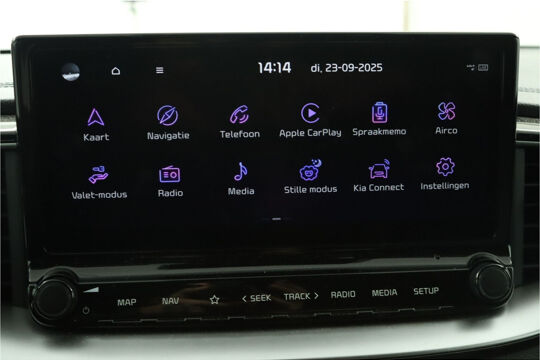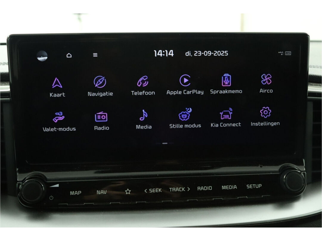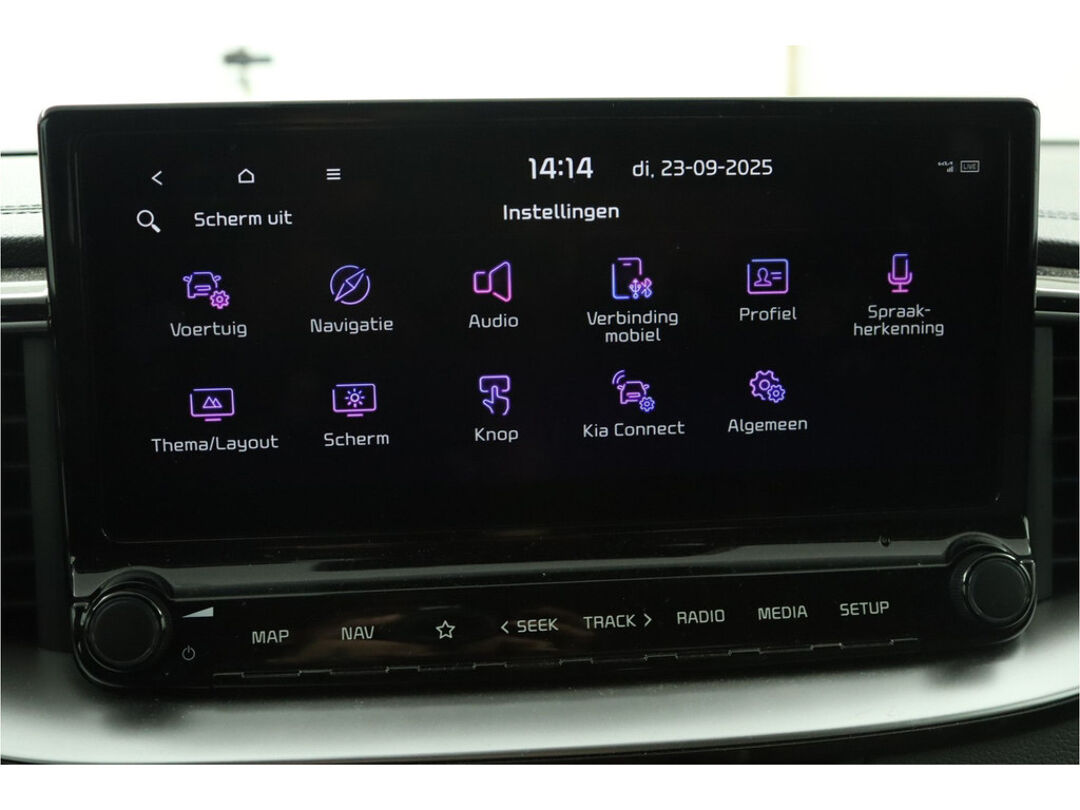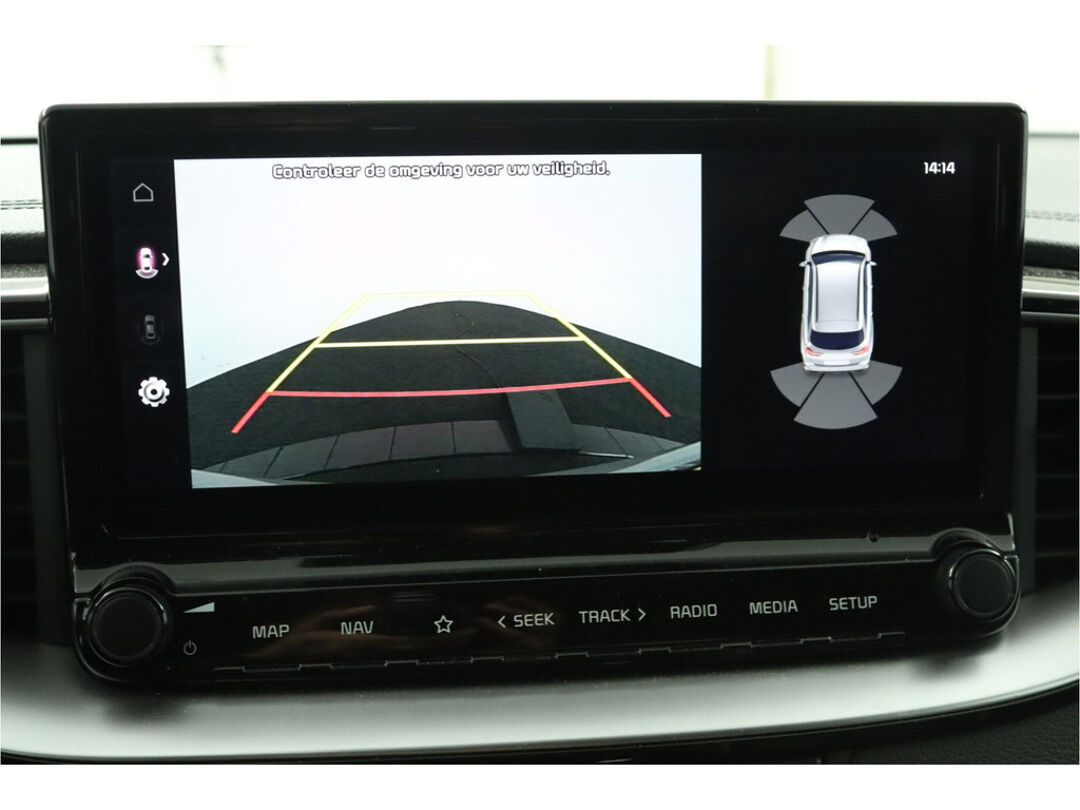 U leest alle belangrijke functies helder af dankzij het digitale dashboard. Nooit meer parkeerschade dankzij de achteruitrijcamera. In het zeldzame geval van een storing weet u nog eerder dan de monteur wat er mankeert. Uw smartphone met remote services geeft direct inzicht. U bedient het full map navigatiesysteem en het audiosysteem met DAB-radio via knoppen op het stuur, of zelfs met uw stem. Zo kunt u steeds uw aandacht gericht houden op de weg. Onderweg de accu van uw smartphone opladen gaat zonder snoeren en stekkers. U plaatst 'm simpel in de draadloze oplaadmogelijkheid voor telefoons en klaar! Ook is de Kia uitgerust met: electronic climate control, regensensor, keyless entry, automatisch dimmende binnenspiegel, lederen stuur en lederen versnellingspook.