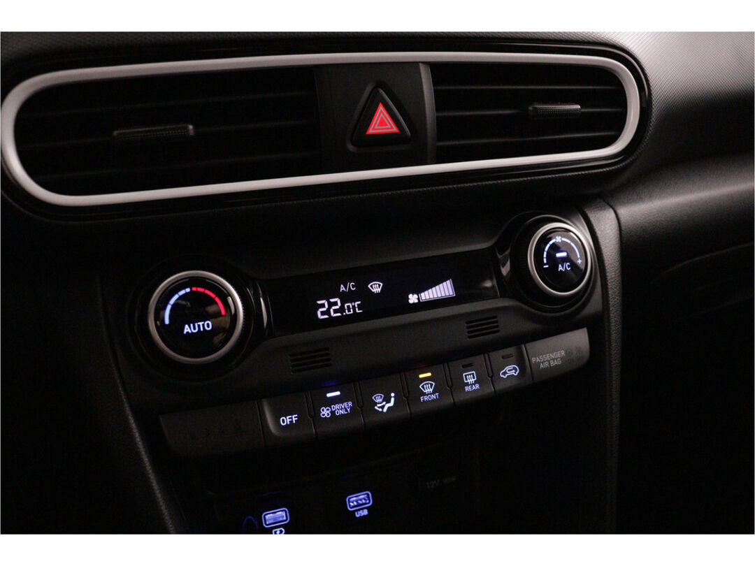 Deze Hyundai Kona maakt een voortreffelijke indruk. Hiermee mag je gezien worden in de stad én op de weg! Deze SUV wordt aangedreven door een krachtige viercilinder benzinemotor. Bij de rijke uitrusting horen ook 16 inch lichtmetalen velgen, dakspoiler, donker getint glas achter, in delen neerklapbare achterbank en verstelbare lendensteunen.