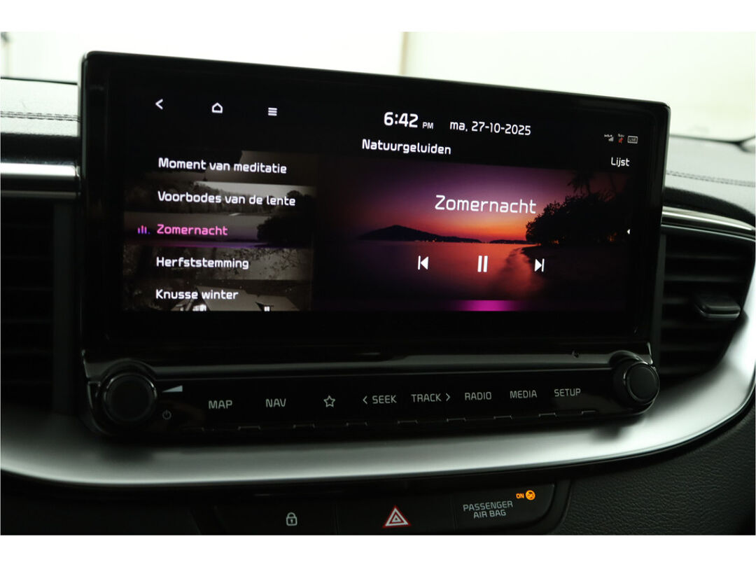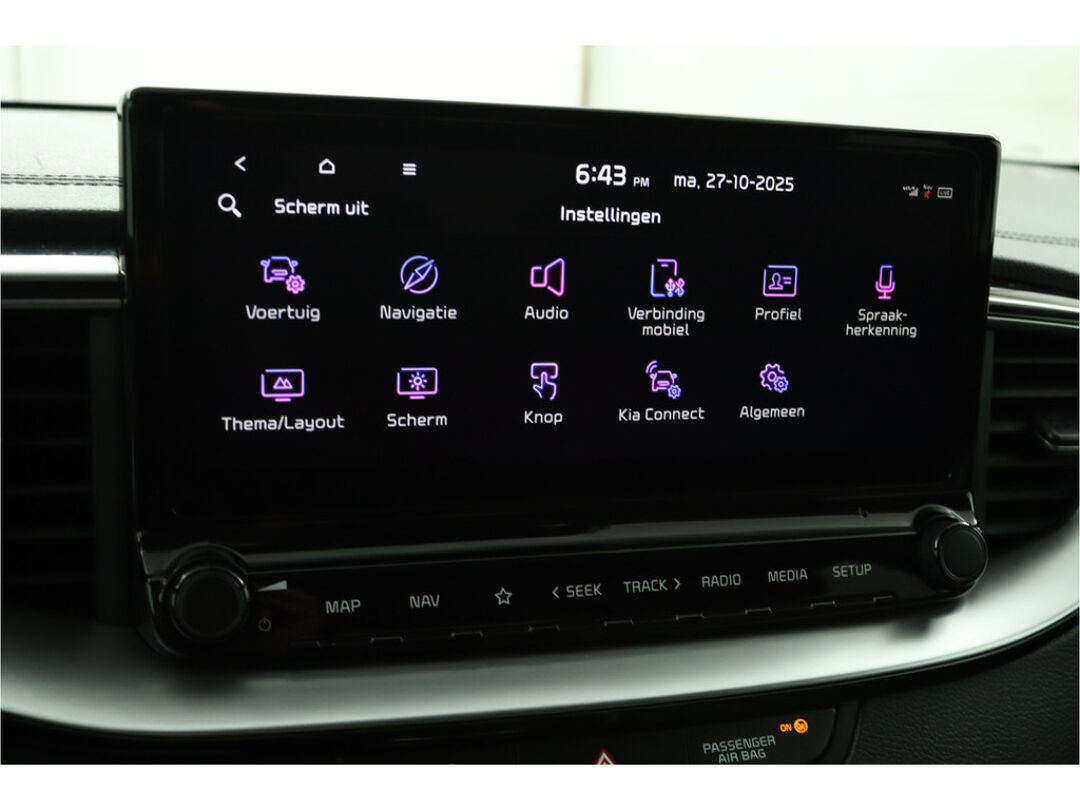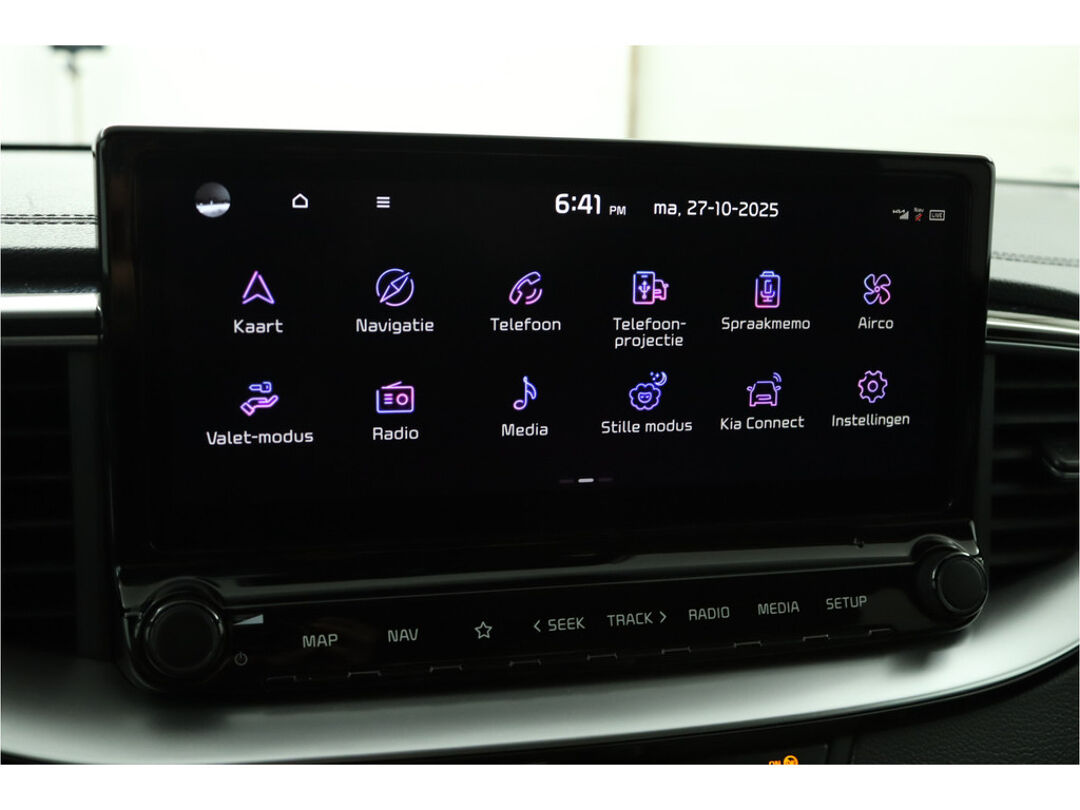 U zult verrukt zijn van de digitale wereld van mobiliteit; het digitale dashboard projecteert alles wat u nodig heeft om uw rit aangenaam en veilig te maken. Boem is ho? Dat is verleden tijd. De achteruitrijcamera laat precies zien hoeveel ruimte u achter nog heeft! Hoe is het met de banden, de accu en andere onderdelen? Connected Services maakt het inzichtelijk, 24/7 via de app. Deze Kia is voorzien van spraakbediening voor het full map navigatiesysteem en voor het audiosysteem met DAB-ontvangst. Maar u kunt ook de knoppen op het stuur gebruiken. Kabelkluwens en stekkerslingers van smartphones zijn hier niet aan de orde. De draadloze oplaadmogelijkheid voor telefoons maakt opladen strak, simpel en snel. En dan is deze auto ook nog eens voorzien van electronic climate control, regensensor, keyless entry, automatisch dimmende binnenspiegel, lederen stuur en lederen versnellingspook.