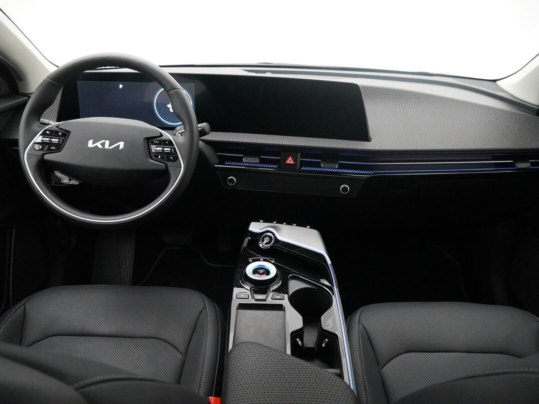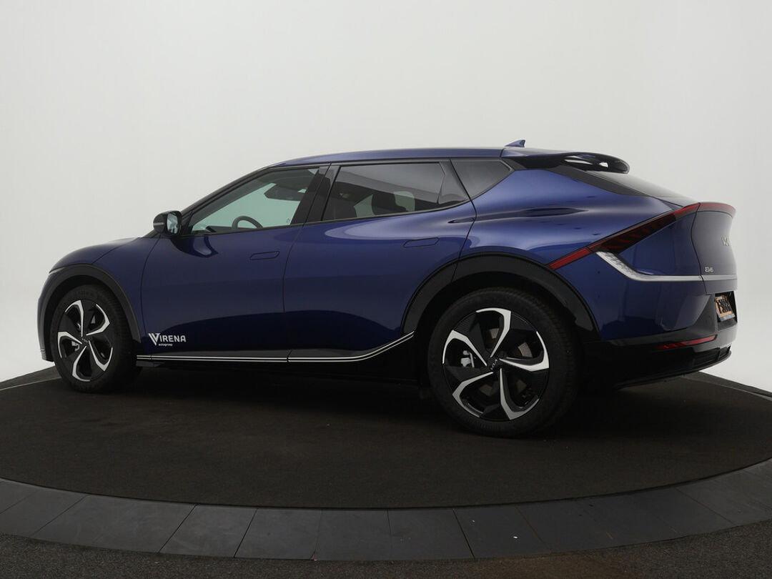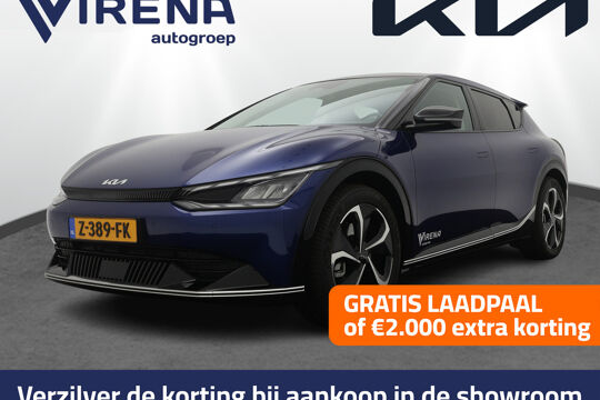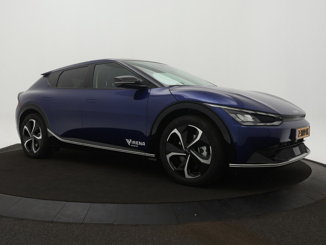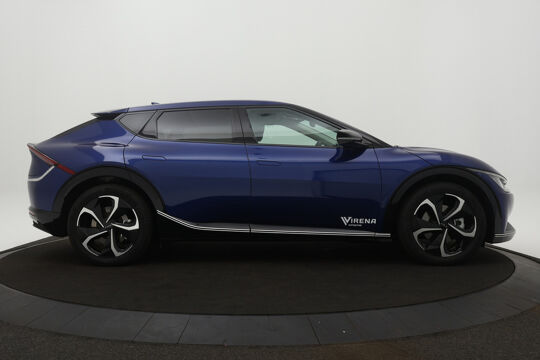 De rijbeleving is intuïtief. Het rijplezier is intens. Maak kennis met deze Kia EV6 en laat u verrassen door zijn unieke karakter. Fiscaal aantrekkelijk is de elektromotor, waarmee u niet alleen stil maar ook uitermate pittig kunt rijden. Op de teller van deze auto staat slechts 4950 kilometer. Een krachtige motor geeft deze auto zijn sportieve prestaties. Met functies als stoelverwarming, verwarmbare achterbank en een verwarmbaar stuur, is comfort gegarandeerd in dit voertuig tijdens koude ritten. Het interieur lijkt groter en ruimtelijker dankzij het elektrisch bedienbare glazen panoramadak. De achterklep opent automatisch met een druk op de knop. Handig als u met volle handen staat. Ook is de auto voorzien van: 20 inch lichtmetalen velgen, LED koplampen, warmtewerend glas, in delen neerklapbare achterbank, LED-achterlichten en elektrisch verstelbare buitenspiegels met geheugenfunctie.