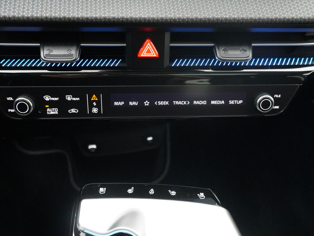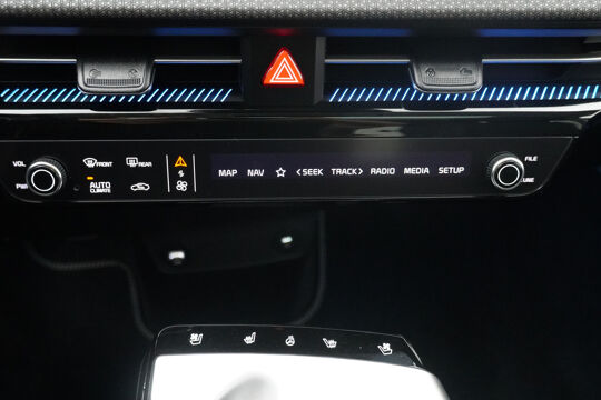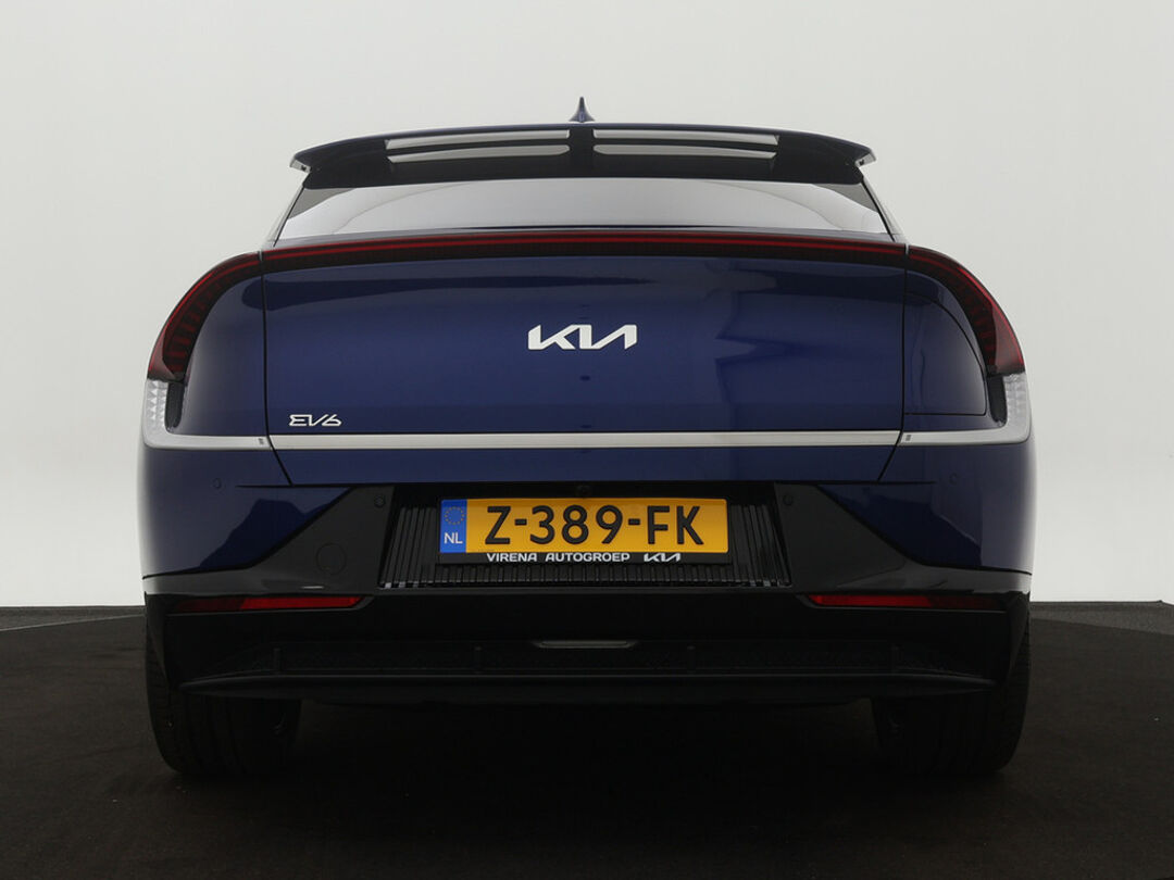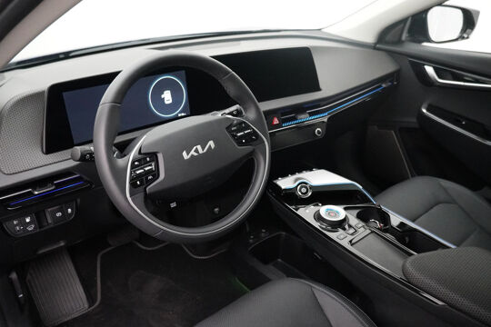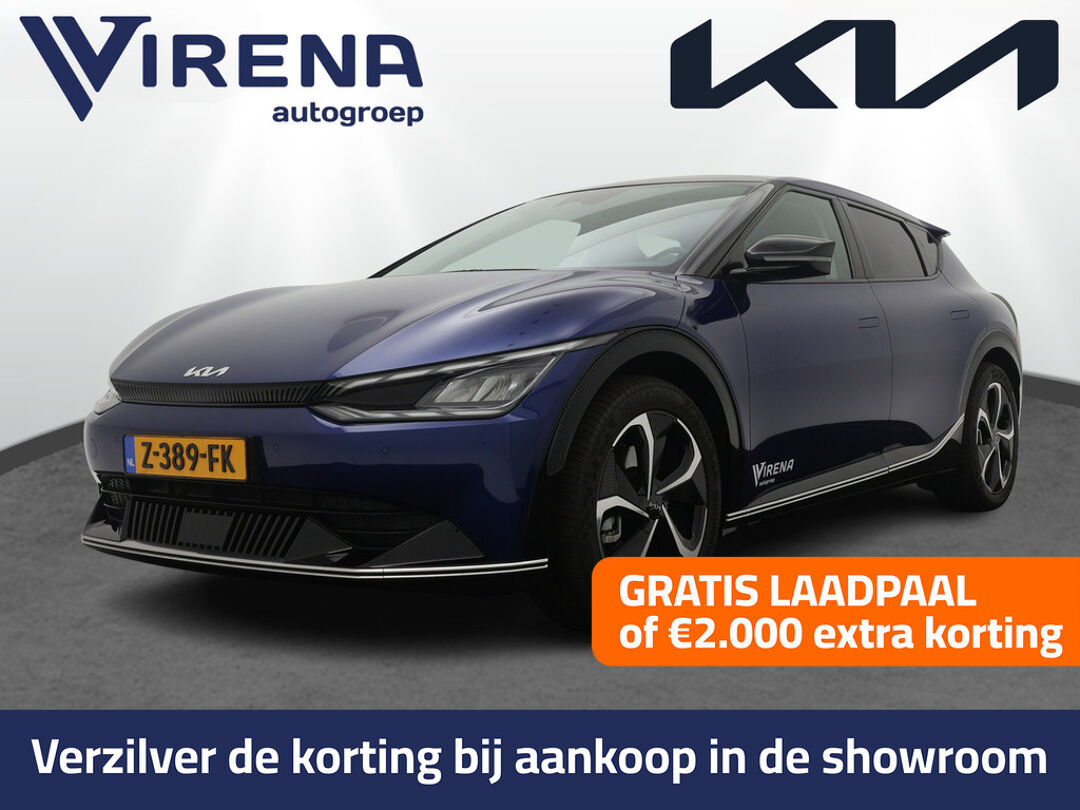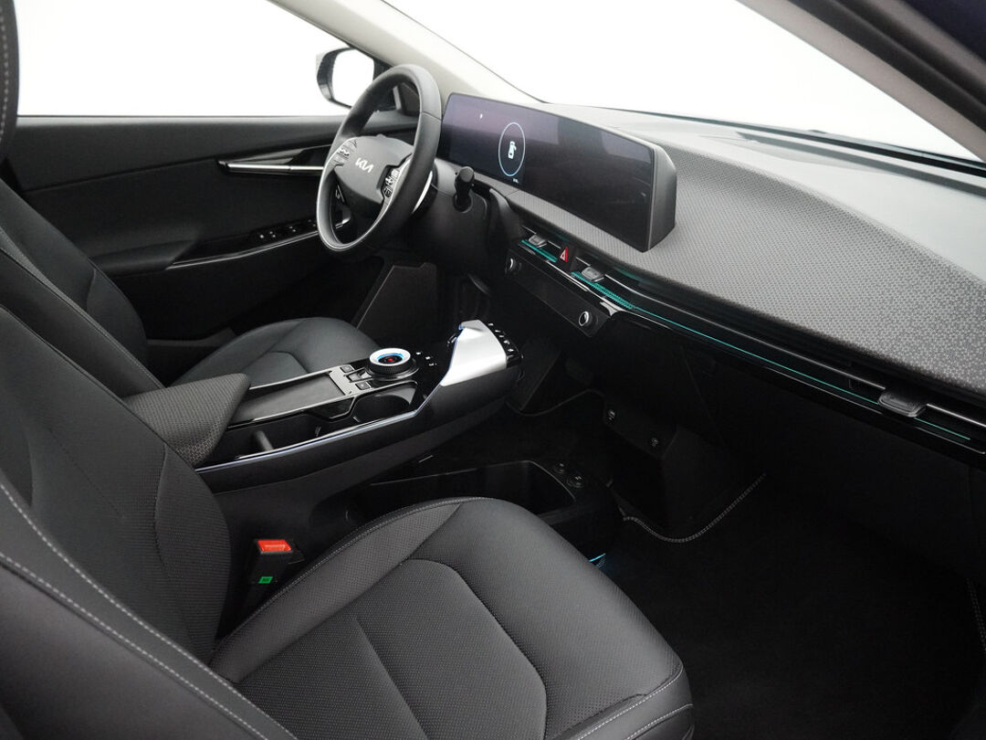 De rijbeleving is intuïtief. Het rijplezier is intens. Maak kennis met deze Kia EV6 en laat u verrassen door zijn unieke karakter. Fiscaal aantrekkelijk is de elektromotor, waarmee u niet alleen stil maar ook uitermate pittig kunt rijden. Op de teller van deze auto staat slechts 4950 kilometer. Een krachtige motor geeft deze auto zijn sportieve prestaties. Met functies als stoelverwarming, verwarmbare achterbank en een verwarmbaar stuur, is comfort gegarandeerd in dit voertuig tijdens koude ritten. Het interieur lijkt groter en ruimtelijker dankzij het elektrisch bedienbare glazen panoramadak. De achterklep opent automatisch met een druk op de knop. Handig als u met volle handen staat. Ook is de auto voorzien van: 20 inch lichtmetalen velgen, LED koplampen, warmtewerend glas, in delen neerklapbare achterbank, LED-achterlichten en elektrisch verstelbare buitenspiegels met geheugenfunctie.