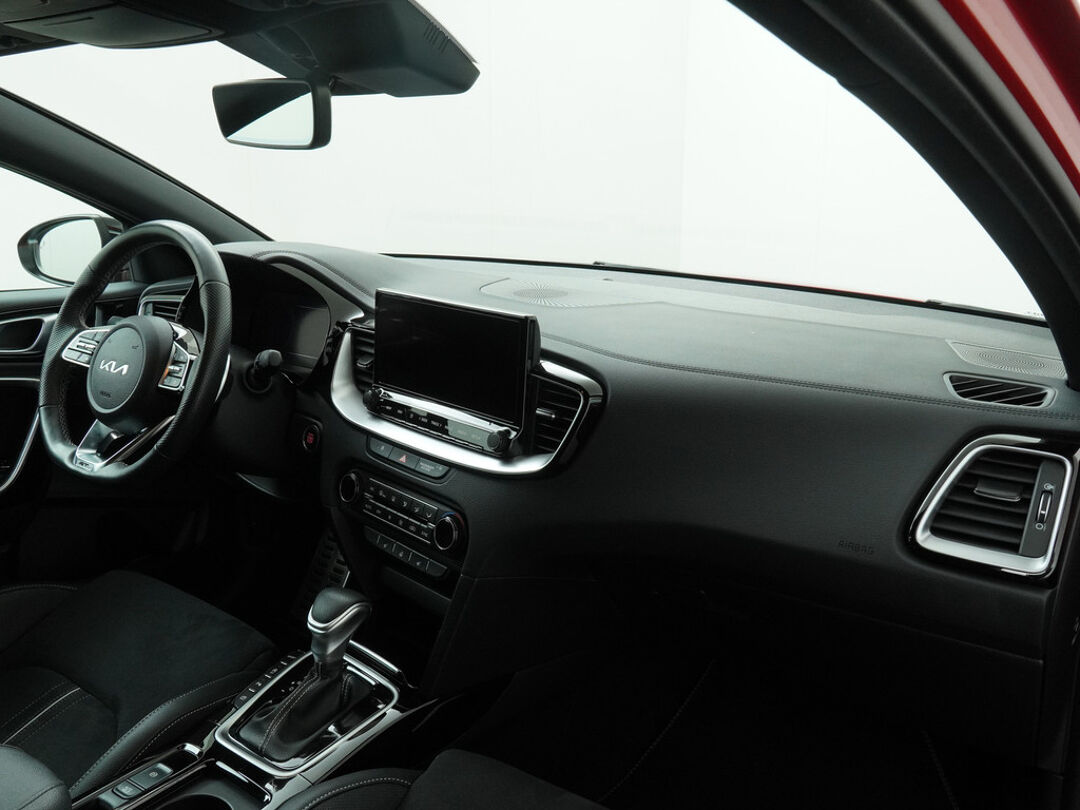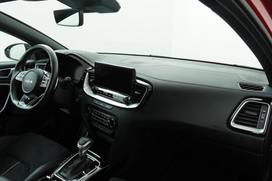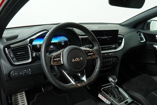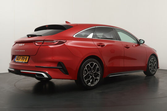 Indrukwekkende prestaties, gestroomlijnd design en superieure betrouwbaarheid; dat zijn de kenmerken van deze Koreaanse Kia ProCeed. De aandrijving van deze Kia wordt verzorgd door een viercilinder benzinemotor en een automatische transmissie. Voorin is het 's winters genieten met de verwarmbare voorstoelen voor zowel bestuurder als bijrijder. Altijd een goede zitpositie bij iedere snelheid, dankzij de sportstoelen. De elektrische achterklep opent met een druk op de knop, zodat u gemakkelijk toegang heeft tot de bagageruimte. U wordt in deze auto ook getrakteerd op 17 inch lichtmetalen velgen, Full LED koplampen, donker getint glas achter, in delen neerklapbare achterbank, LED-achterlichten en verstelbare lendensteunen.