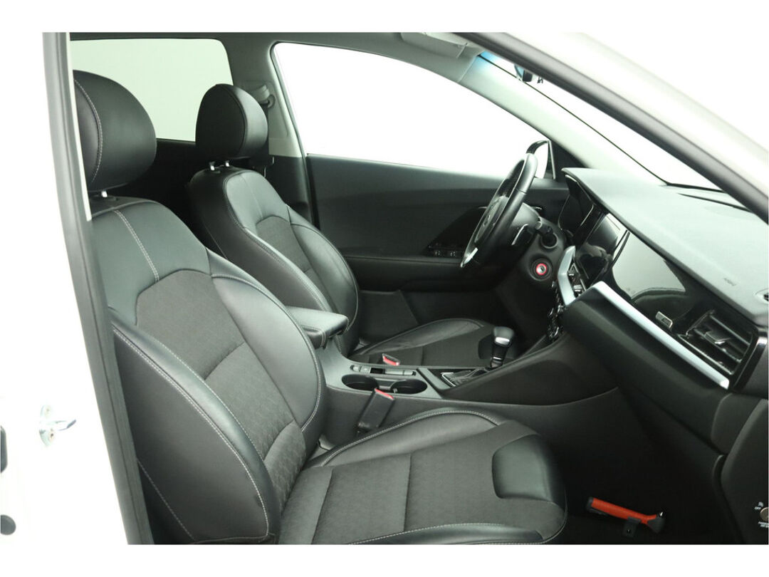 Met een auto als deze Kia Niro komt u absoluut goed voor de dag. Onder de motorkap ligt een zuinige viercilinder benzinemotor. Het interieur lijkt groter en ruimtelijker dankzij het glazen panoramadak. Bij de zeer complete uitrusting van deze auto behoren ook 16 inch lichtmetalen velgen, LED-dagrijverlichting, in hoogte verstelbare passagiersstoel, donker getint glas achter en in delen neerklapbare achterbank.