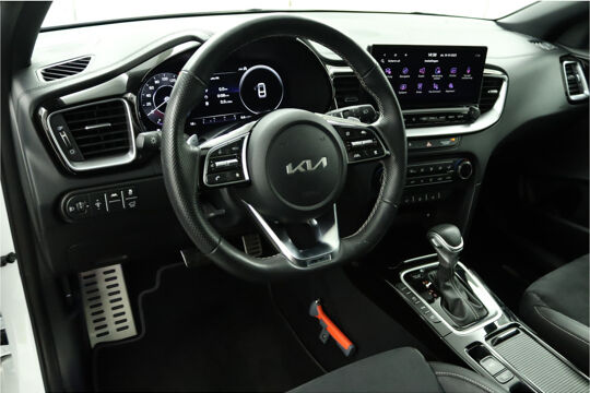 In het moderne verkeer hebt u achter het stuur van de Kia ProCeed altijd de controle. Deze auto komt uit 2024. Hij heeft een benzinemotor en een automatische transmissie. Behaaglijk onderweg zijn? Als bestuurder geniet u van de verwarmbare voorstoelen. Net als uw bijrijder! Uitstekende zitsteun en een strakke look? Daar zorgen de sportstoelen voor! De achterklep opent automatisch met een druk op de knop. Handig als u met volle handen staat. Ook de passagiers achterin ervaren het ultieme comfort, dankzij de verwarmde achterbank. Ook is de auto voorzien van: 18 inch lichtmetalen velgen, Full LED koplampen, donker getint glas achter, in delen neerklapbare achterbank, LED-achterlichten en verstelbare lendensteunen.