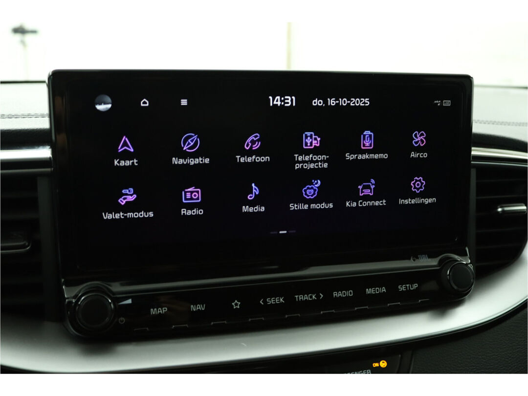 Het eigentijdse interieur wordt natuurlijk helemaal volmaakt met het digitale dashboard. De achteruitrijcamera geeft u duidelijk zicht op de ruimte achter de auto. Adaptive cruise control houdt de ingestelde snelheid vast en houdt automatisch afstand tot uw voorligger. Kop aan kont langzaam rijden: dan is afstand houden soms lastig. De file assistent helpt en zorgt automatisch voor veilige ruimte tot de voorligger. Ook als die tot stilstand komt. Zoals u van zo'n jonge auto mag verwachten, zijn hier ook de geavanceerde remote services aanwezig. Simpelweg met een app op uw smartphone controleert u op afstand de status van de auto en bedient u diverse functies. U bent in deze Kia ook voorzien van dashboard met spraakbediening, premium audiosysteem, full map navigatiesysteem, electronic climate control, schakelpaddles aan het stuur en draadloos opladen.