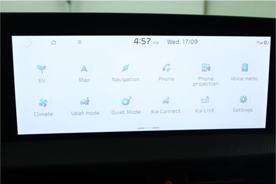 Tijdens de rit wordt u als bestuurder ondersteund door verschillende systemen die de weg en uw omgeving in de gaten houden. U hoeft onderweg uw hoofd nooit te draaien of uw blik te verplaatsen om dashboard-info af te lezen. De head-up display projecteert alles op de voorruit. U kunt rijden als een jachtpiloot. Tijdens de rit hebt u altijd een bijrijder, want de verkeersbord-detectie leest de borden langs de weg en projecteert ze voor u op het instrumentarium. Keep your lane? Het Lane-keeping systeem zorgt er automatisch voor. In deze Kia vinden we verder een dodehoekdetector detectiesysteem, forward collision warning system, hill hold functie, vermoeidheidsherkenning, autonoom remsysteem en bandenspanningcontrolesysteem.