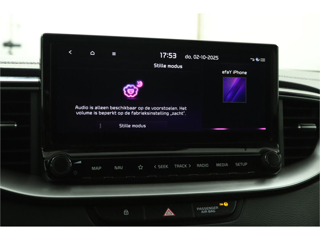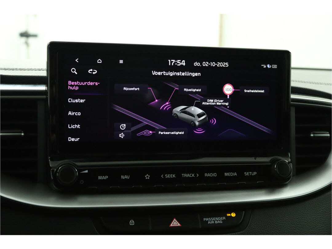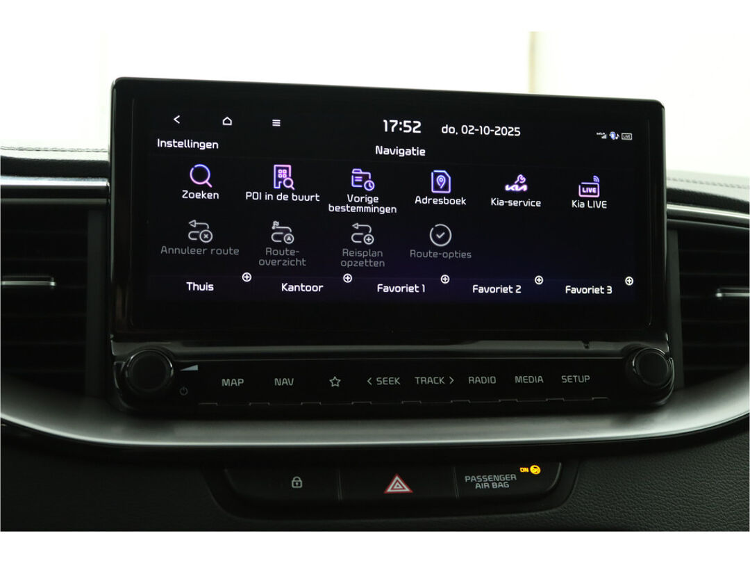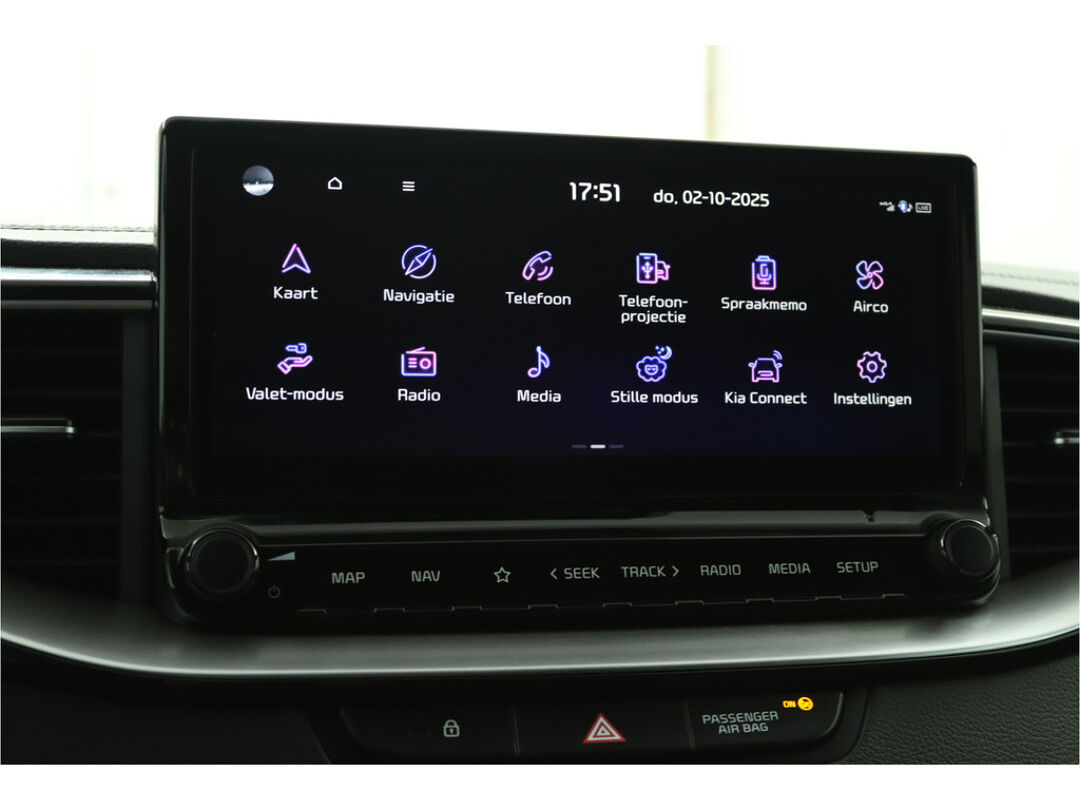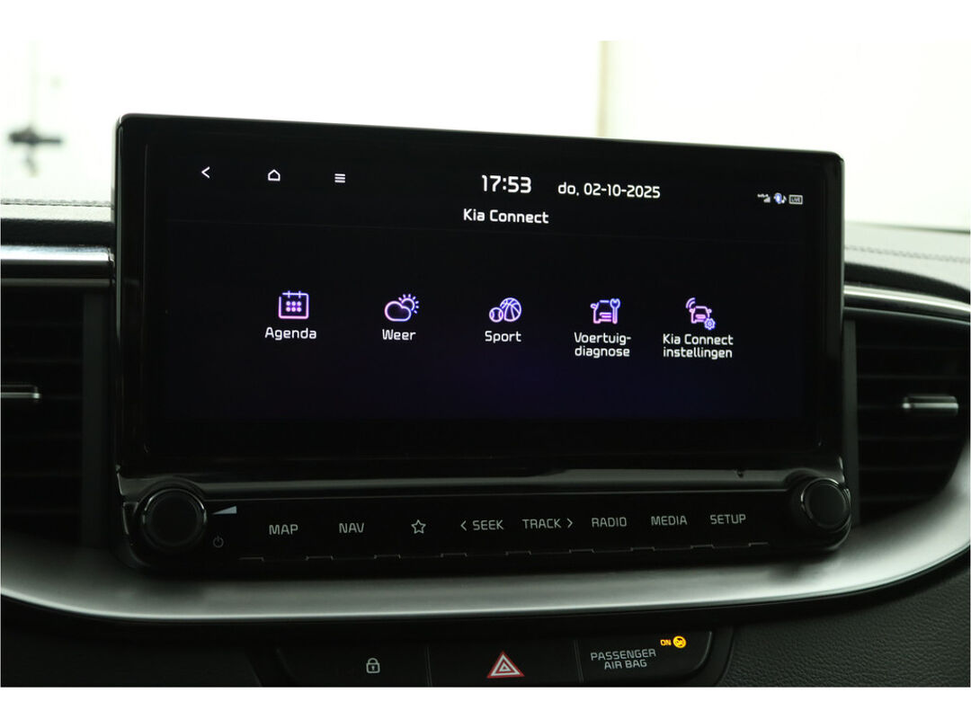 Het personaliseren van uw cockpitinterface is mogelijk met het digitale dashboard in deze auto. Altijd achter zicht, nooit meer nekkramp! De achteruitrijcamera maakt het supermakkelijk. Adaptive cruise control is veilig en comfortabel. De snelheidsregelaar houdt automatisch afstand tot het voertuig dat voor u rijdt. Filerijden zal nooit een pretje worden. Maar met de file assistent wordt het wél relaxter. Deze geavanceerde optie zorgt dat u automatisch de juiste afstand tot de voorligger houdt en remt bovendien als de rij tot stilstand komt. Navigatie, onderhoudsstatus, vergrendeling, audio... de mogelijkheden van remote services zijn haast oneindig. Ook deze auto laat zich bedienen en analyseren via uw smartphone! De Kia is standaard voorzien van: dashboard met spraakbediening, full map navigatiesysteem, electronic climate control, schakelpaddles aan het stuur, draadloos opladen en DAB ontvangst.
