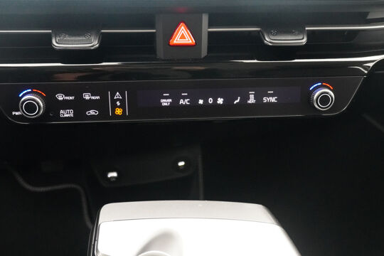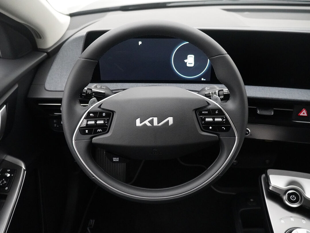 De Kia EV6 is ook voorzien van ADAS. Deze Advanced Driver Assistence Systems fungeren als extra ogen en oren: ze houden voor u de weg in de gaten en grijpen in wanneer dat nodig is. Bij de veiligheidssystemen van deze Kia hoort ook de verkeersbord-detectie. Die leest tijdens het rijden als het ware met u mee en attendeert u op de significante verkeersborden langs en boven de weg. Indien u onbedoeld de rijstrook lijkt te verlaten, reageert het Lane-keeping systeem meteen en corrigeert. Het risico van een kop-staartbotsing wordt aanzienlijk verminderd door de forward collision warning. U bent mede dankzij hill hold functie, vermoeidheidsherkenning, autonoom remsysteem en bandenspanningcontrolesysteem steeds veilig onderweg.